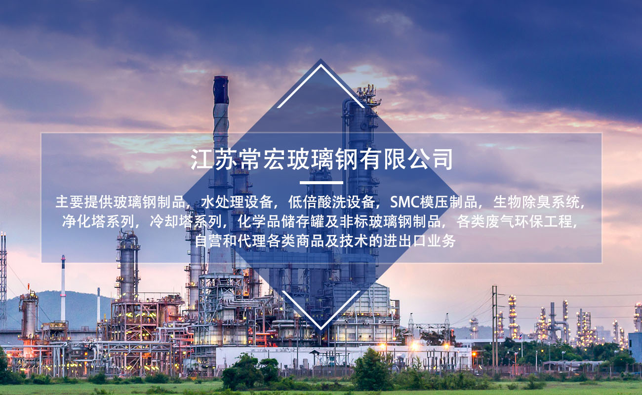 江蘇常宏玻璃鋼有限公司,位于常州市武進區常武南路199號(錫宜高速漕橋入口處),主要提供玻璃鋼制品,水處理設備,低倍酸洗設備,SMC模壓制品,生物除臭系統,凈化塔系列,冷卻塔系列,化學品儲存罐及非標玻璃鋼制品,各類廢氣環保工程,自營和代理各類商品及技術的進出口業務,歡迎新老客戶合作,共謀發展!